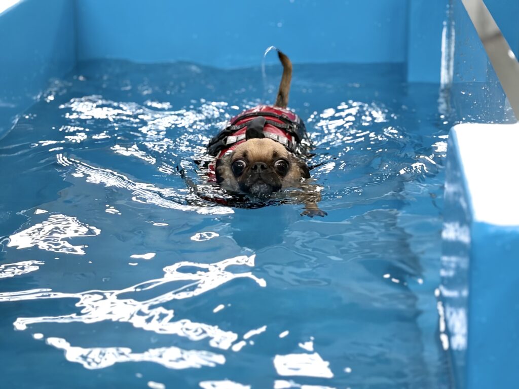 お友達と遊んで、ドッグプールで運動しました!